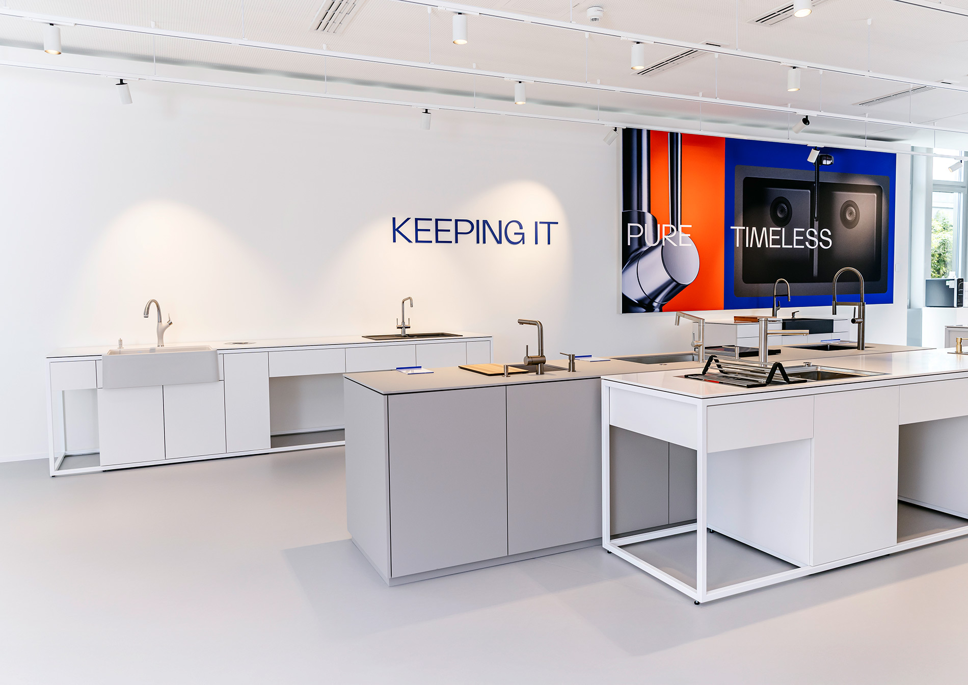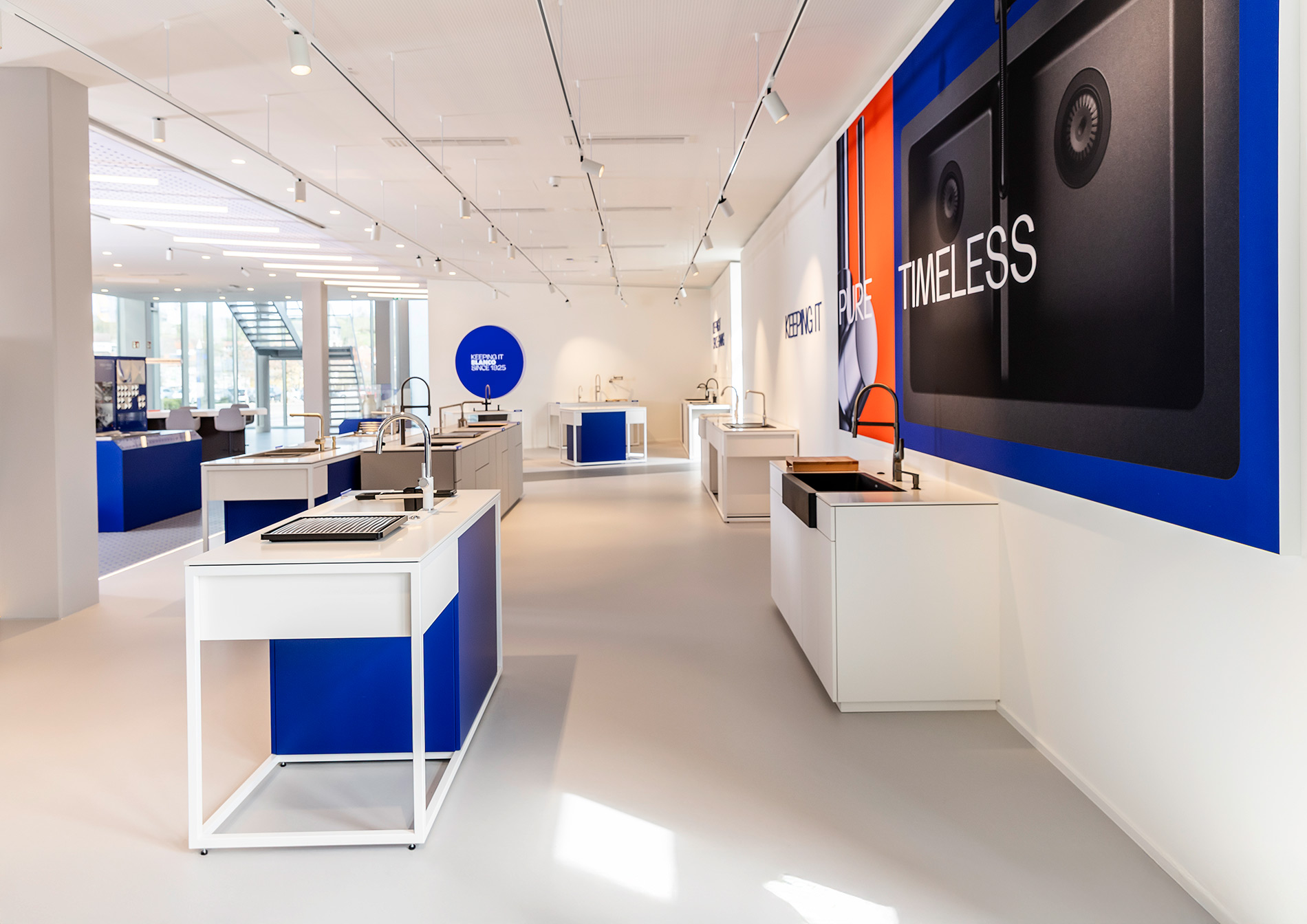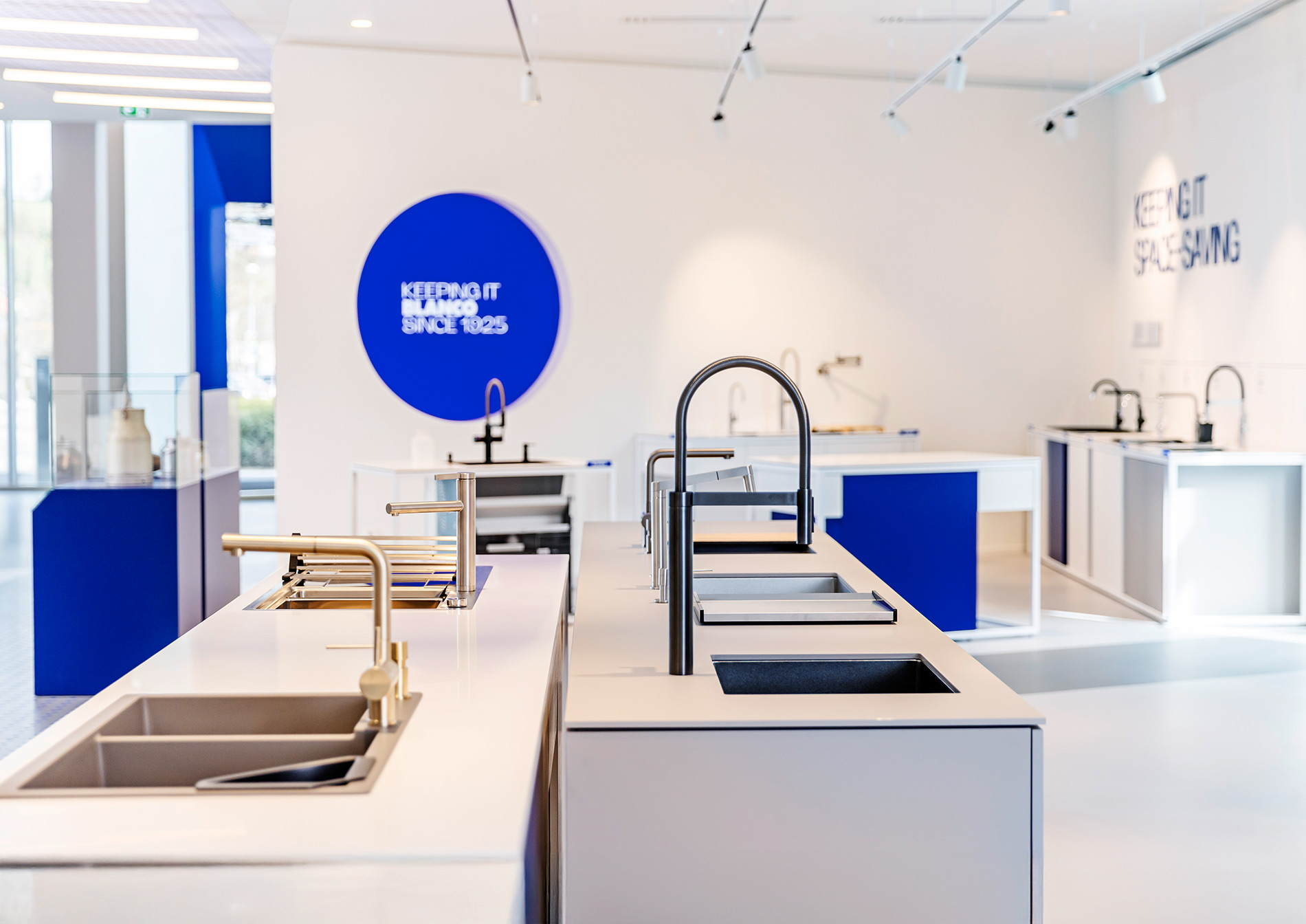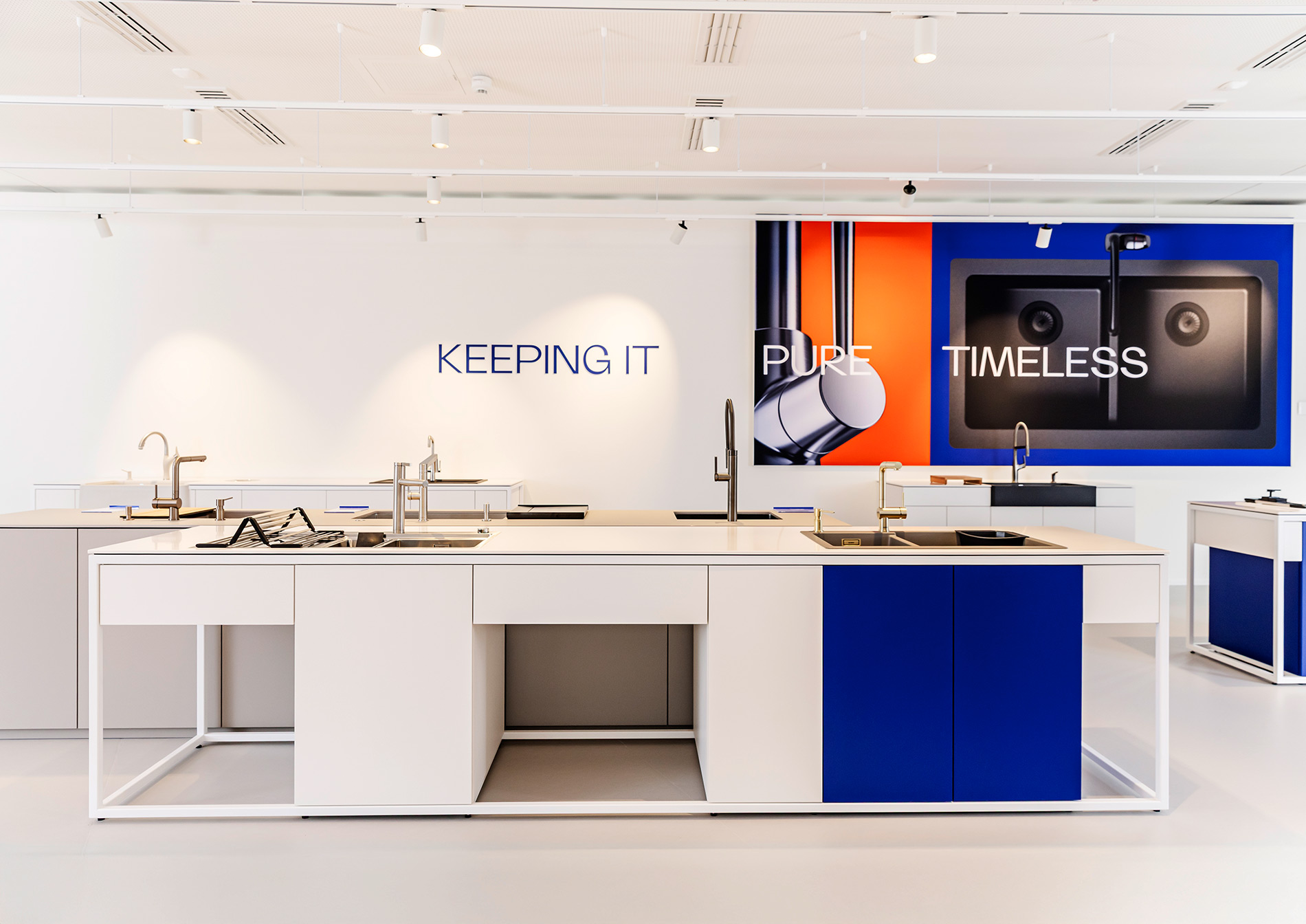 BLANCO beauftragte uns, den Küchenwasserplatz als Herzstück der Premium Küche in klar zonierten Bereichen („Stages“) zu inszenieren. Ziel war es, die BLANCO UNIT in funktionsfähigen Stationen für Beratung, Training und Events erlebbar zu machen.